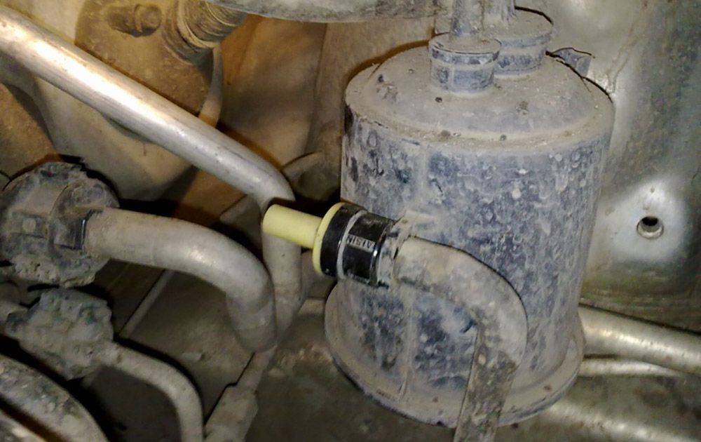 - Найдите адсорбер, отсоедините от него патрубки и заглушите.