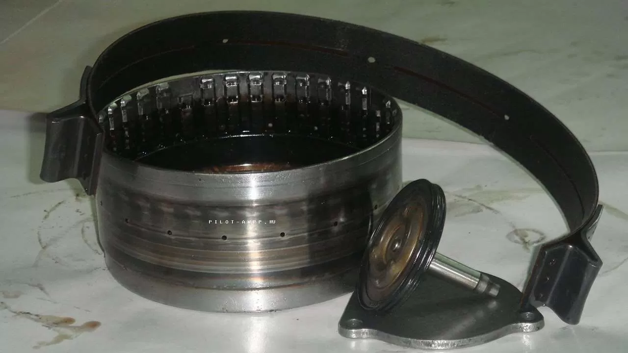 Части фрикциона – поршень заставляет двигаться чрезмерное давление масла. Сам поршень очень плотно прижимает ведущие элементы к ведомым, заставляя их вращаться как единое целое, и передавать КМ ко втулке. Стоит отметить, что в АКПП находится сразу несколько таких планетарных механизмов.