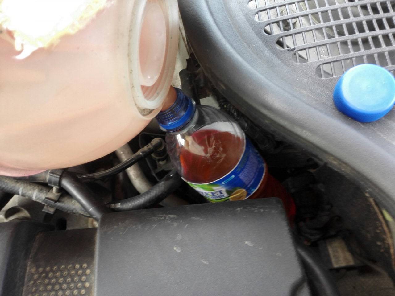 Найти место ухода охлаждающей жидкости можно в ходе визуального осмотра расширительного бачка. Поврежденный бачок следует заменить, так как после пайки пластика через некоторое время течь антифриза возобновляется (в процессе работы двигателя в бачке создается достаточно высокое давление).