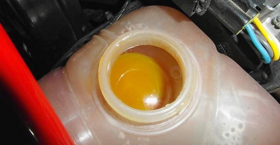 - верный признак смешивания технических жидкостей – наличие эмульсии белесоватого оттенка, появившееся в районе маслозаливной горловины, по консистенции напоминающей взбитые сливки – это результат попадания ОЖ в смазывающую жидкость;