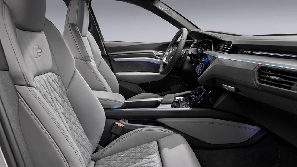 Версия S line имеет еще более агрессивный внешний вид благодаря спортивному переднему бамперу, заднему спойлеру и 20-дюймовым колесам. В комплектацию также входит спортивная пневматическая подвеска и накладки на пороги с подсветкой с логотипом S. Благодаря стильному дизайну и камерам вместо традиционных боковых зеркал (только для Европы, в США их не будет) коэффициент сопротивления варианта S Line составляет 0,25, улучшенная аэродинамика означает, что Sportback может проехать примерно на 10 км дальше, чем стандартная модель.