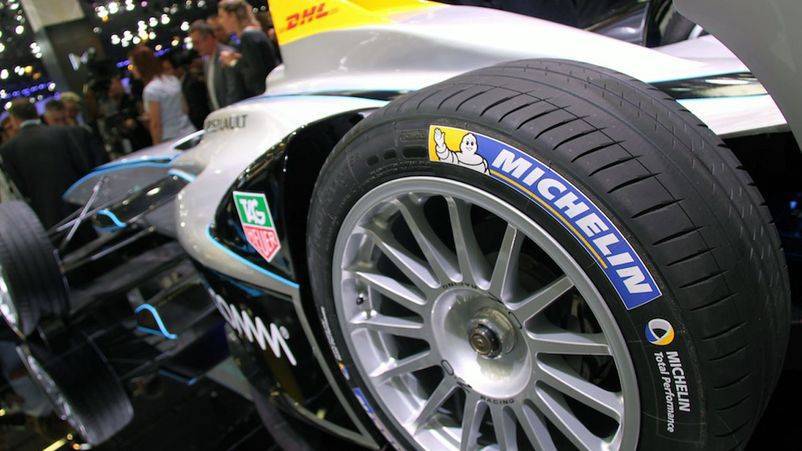 Гидравлический тип. Выбор материала предоставляется командам. Официальный поставщик шин – компания Michelin. Используется 2 типа резины: слик (сухая погода) и дождевая с высоким протектором. Диаметр шины в Формуле Е не превышает 65 см для передних и 69 см для задних колес.