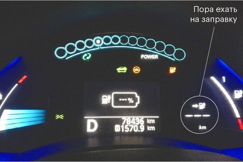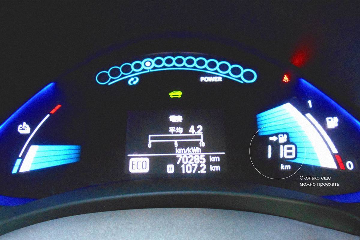 Если заряда остается меньше чем на 15 км, машина предупредит, что пора на зарядку. На остатке 1—2 кВт⋅ч авто переходит в режим жесткой экономии: вы можете проехать тихим ходом 1—2 км до зарядной станции.