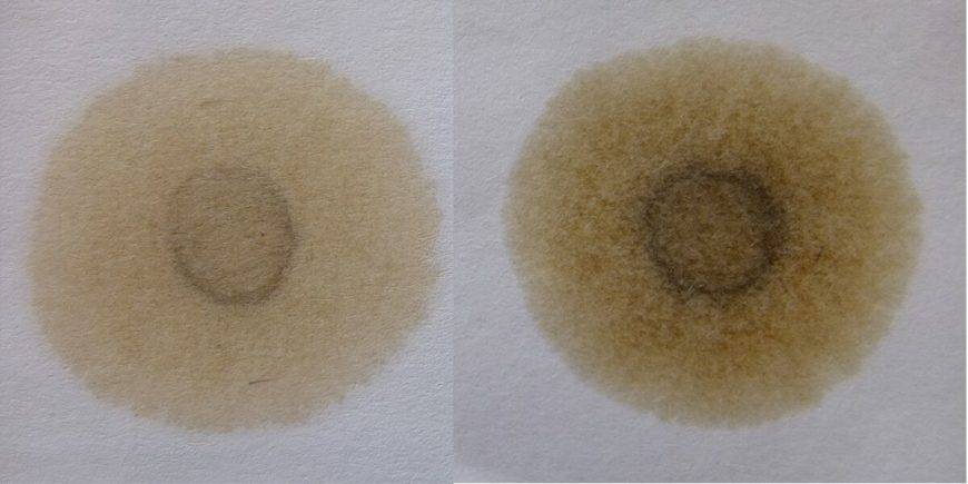 - Проводится анализ зоны диффузии либо светлого колечка. Чем оно больше, тем больше в нем различных примесей.