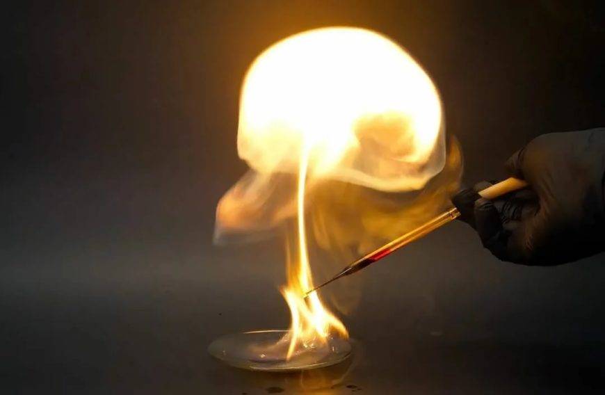 На самом же деле необходимо поджечь разогретое в пробирке масло. Так, для этого нужно взять стеклянную пробирку с узким горлышком и налить в нее небольшое количество масла. Если пробирка имеет плоское дно, то ее лучше разогревать на электрической плитке. Если же пробирка имеет округлое дно, то можно взять ее в лабораторные щипцы и подогревать на открытом источнике огня (кухонная плита, свеча, сухой спирт, прочее)
