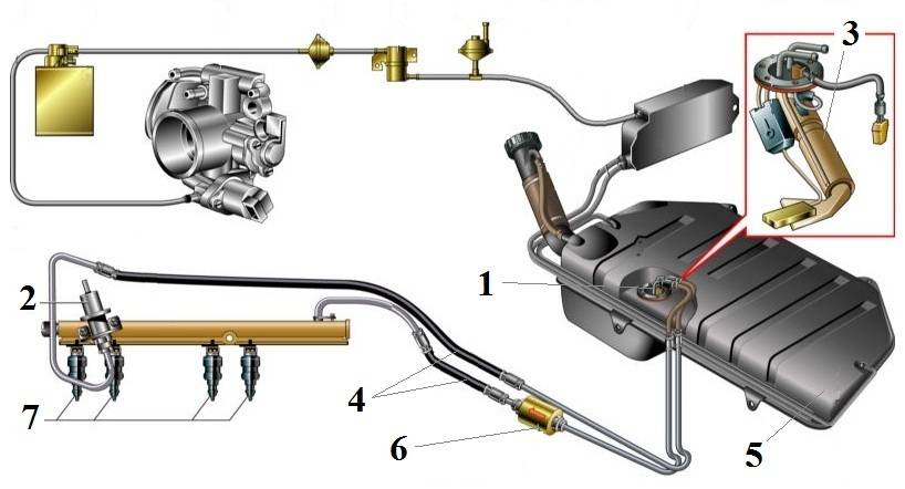 Устройство клапана и принцип действия зависит от типа топливной системы конкретного автомобиля. Существует 3 способа подачи бензина из бака к форсункам: