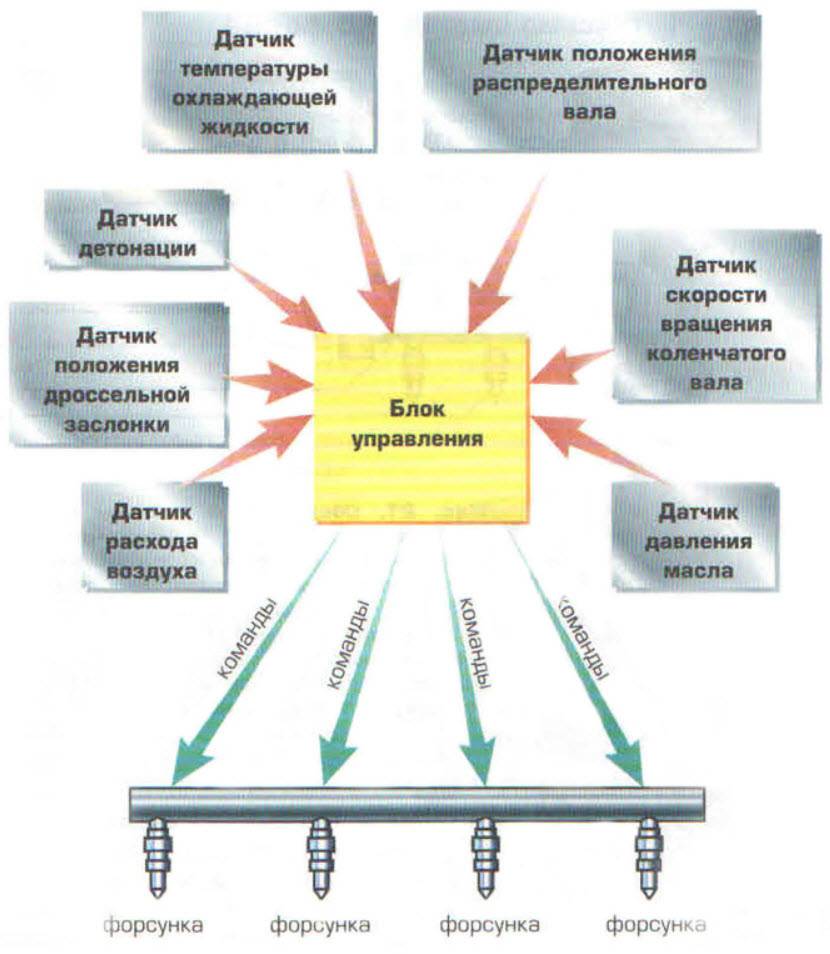 Расход топлива вычисляется по интервалу открытия и закрытия форсунок. Это микросекунды. При нажатии на газ интервал увеличивается и подается больше горючего. Компьютер берет в расчет пропускную способность форсунок, которая точно известна