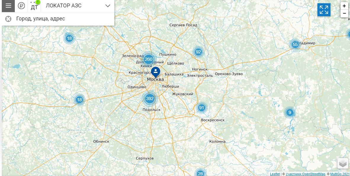 В Москве сетевых заправок немного, и чем дальше от центра, тем их меньше. Наглядно это видно на локаторе сети приема топливных карт, который размещен на сайте: