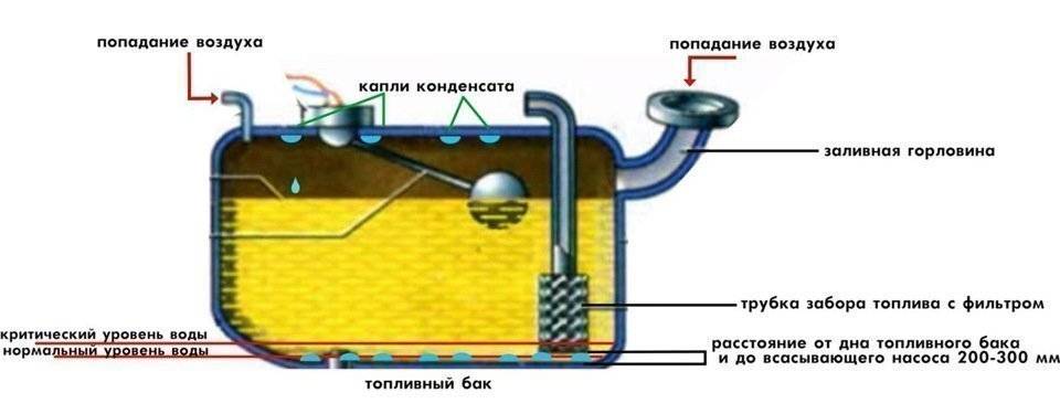 От заправки к заправке слой воды в баке становится всё больше и, в конце концов, достигает критического уровня, при котором она начинает всасываться в топливную систему со всеми негативными последствиями. Причиной появления конденсата может быть также отсутствие герметичности самого бака.