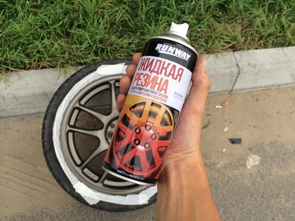 Чтобы продлить срок эксплуатации дисков, защитить их от негативного внешнего воздействия, сделать автомобиль модным и стильным, можно воспользоваться жидкой резиной. Это покрытие особенно хорошо смотрится на легкосплавных дисках и снимается без остатков. Покраска дисков жидкой резиной или так называемым пластидипом не требует специальных навыков или инструментов. Легко и быстро наносится баллончиком, покрывая все неровности.