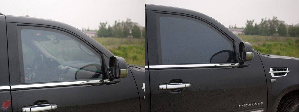 Первый тип — тонировка, при которой подняты оба стекла. Хороша она тем, что гарантирует повышенную шумоизоляцию салона, к тому же такая тонировка очень практична, поскольку растонировать автомобиль можно очень быстро – нужно просто нажать кнопку, которая опустит тонированное стекло.
