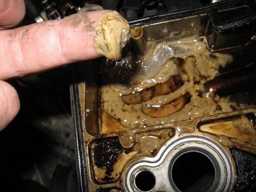 Со временем вентиляция забивается. Но так как парам из картера нужно через что-то выходить, они будут делать это через щуп. Эмульсия станет накапливаться под маслозаливной крышкой или в держателе щупа. После ремонта системы вентиляции менять масло необязательно.