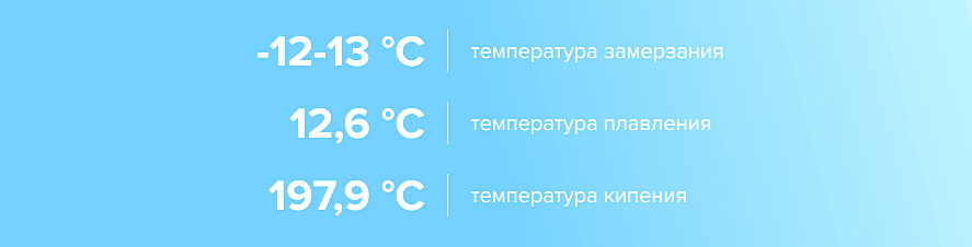 - в высокой концентрации он переносит нагрев почти до 200 градусов, что позволяет использовать их в теплоносителях;