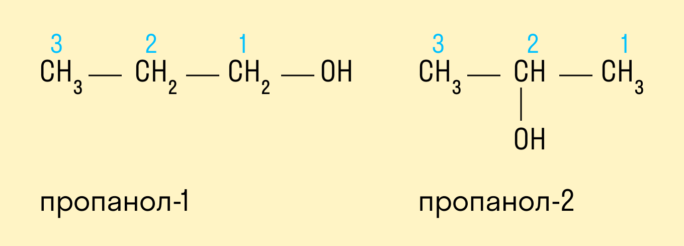 Местоположение гидроксогруппы в названии определяют написанием цифры после суффикса -ол.