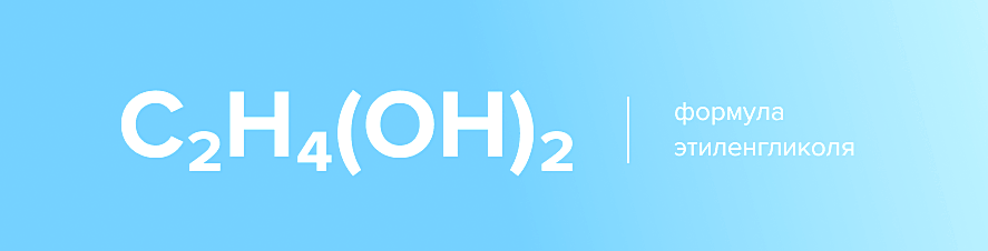Химическая формула этиленгликоля — C2H6O2, рациональная — С2Н4(ОН)2. По своим физическим свойствам — это жидкость без запаха, но со сладким вкусом. Он легко соединяется с водой в любой консистенции, что успешно применяется в промышленности, ведь температура замерзания таких жидкостей очень низкая — это улучшает свойства «незамерзаек».