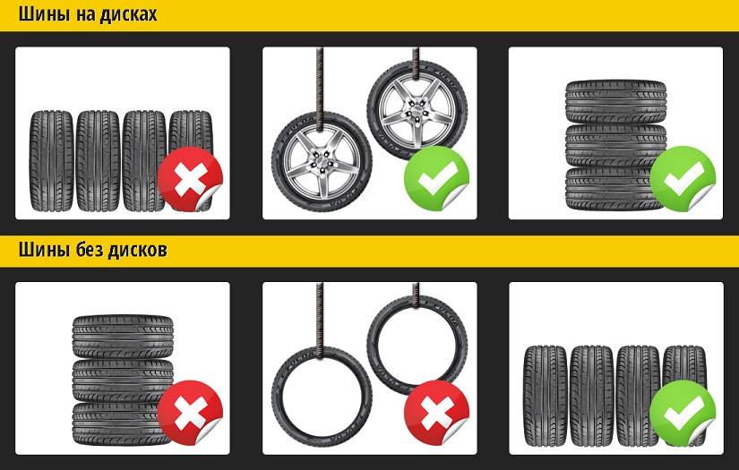 Отдельное внимание уделите положению шин во время хранения, так как они могут деформироваться. Положение выбирайте в соответствии с назначением и видом шин