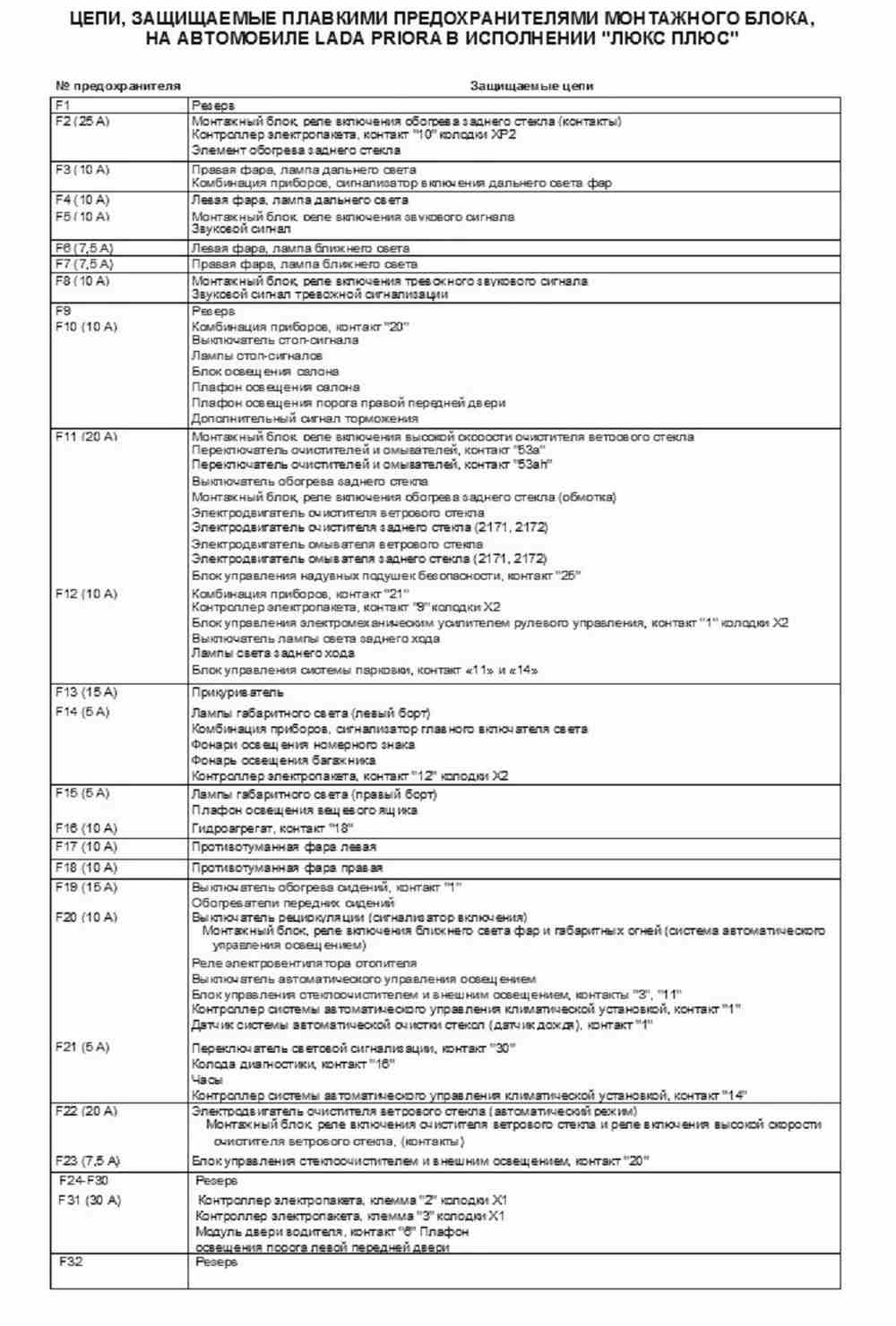Блок предохранителей и реле на Приоре Люкс и Люкс Плюс: обозначения и назначения