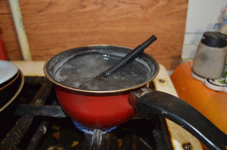 4) Чтобы установить трубку, вам придется ее нагреть. Самый простой способ – 30 мин. «варить» ее в кипятке.