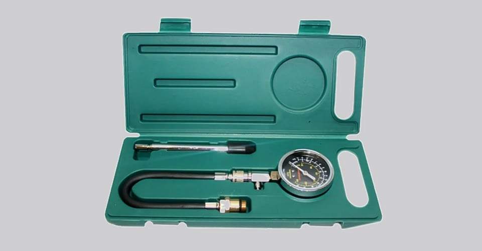 На такте сжатия кривошипно-шатунный механизм (КШМ) должен обеспечивать нормативный показатель давления. В противном случае ТВС не воспламеняется в нужный момент. Для измерения есть специальный прибор — компрессометр. Это манометр со шлангом, наконечник которого вкручивают в колодец свечи зажигания. Инструмент показывает значения в МПа. Диагностику советуем проводить при закрытой дроссельной заслонке.