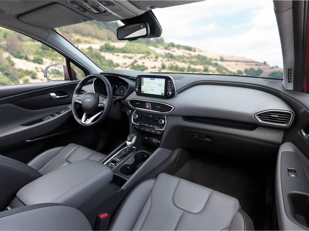 Салон Santa Fe внушительных размеров, особенно много места имеется для пассажиров второго ряда сидений. Средний диван двигается вперед и назад, спинки регулируются по наклону.