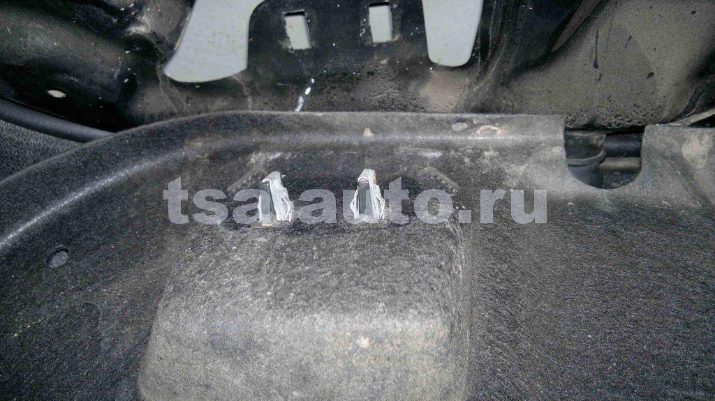 Берем фонарик, откидываем задние сидения и пролазим внутрь багажного отсека. Для начала нужно снять ворсистую обивку крышки. Крепится она на простых пистонах типа дюбель-гвоздь. Если дюбель не выкручивается, то его поддеваем отверткой и вытаскиваем, потом и рубашку. Такой же крепеж спереди, где радиатор (можно потренироваться).