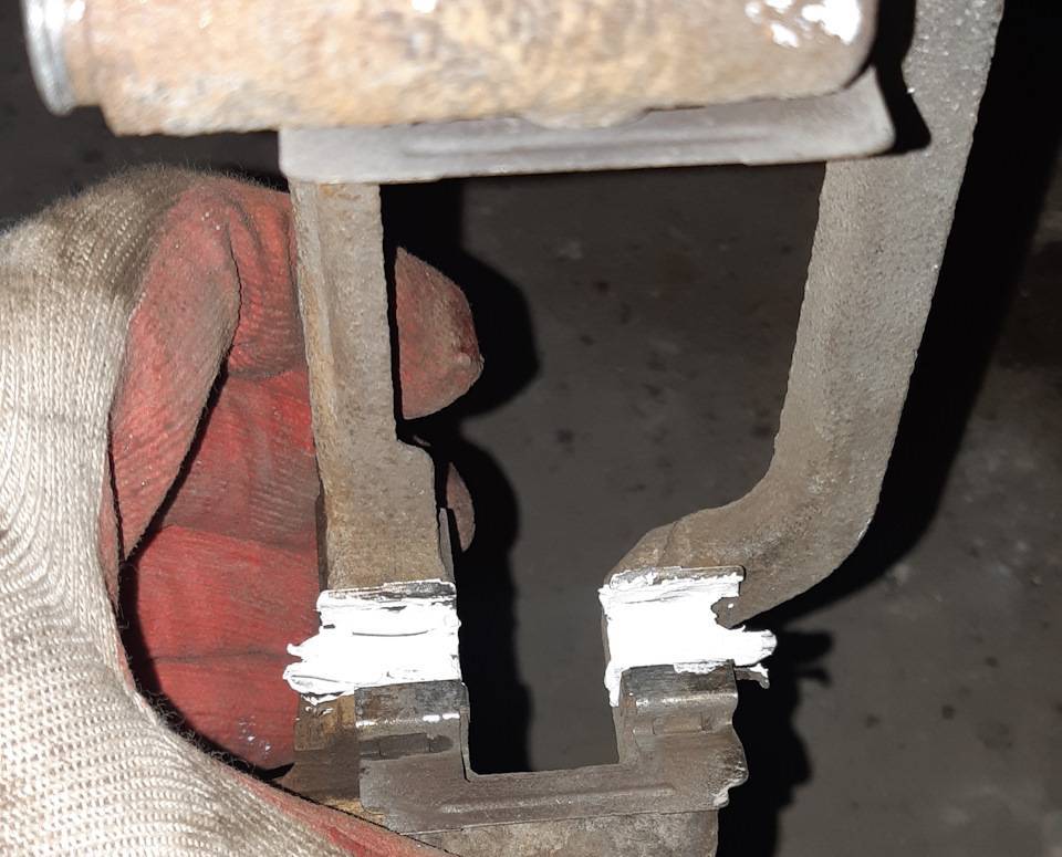 Чистим направляющие тормозных колодок и смазываем их смазкой МС1600.