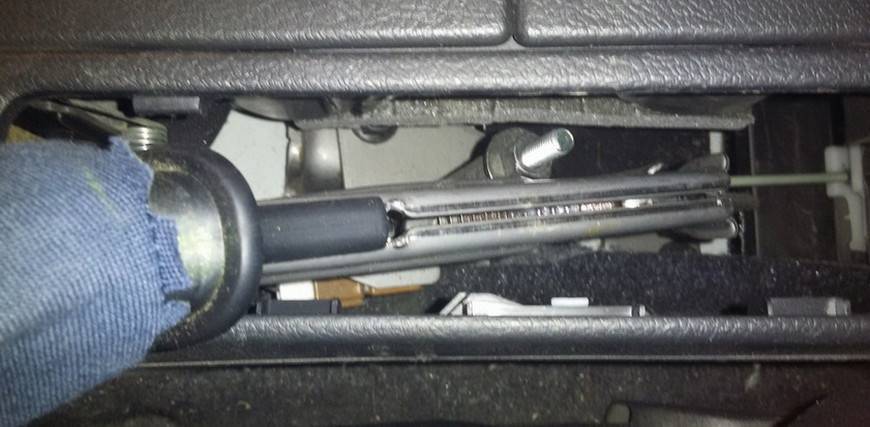 5. Поднимаем ручник чтобы легче было вытащить центральную консоль.
