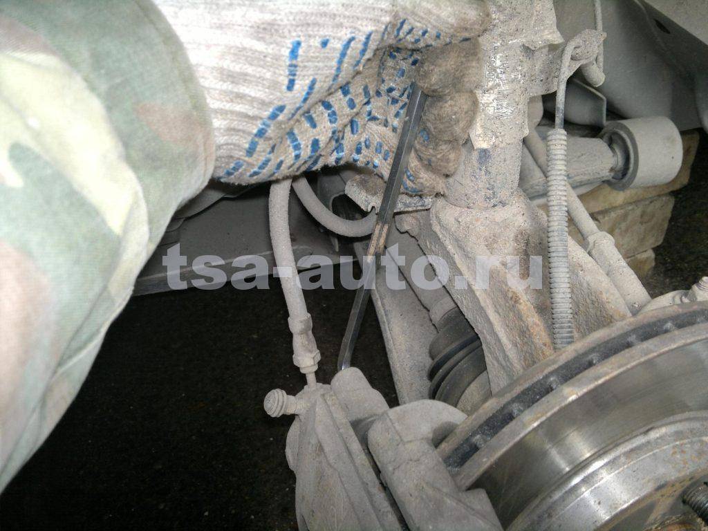 Подвесить тормозной суппорт, чтобы не возникало давление на тормозной шланг.