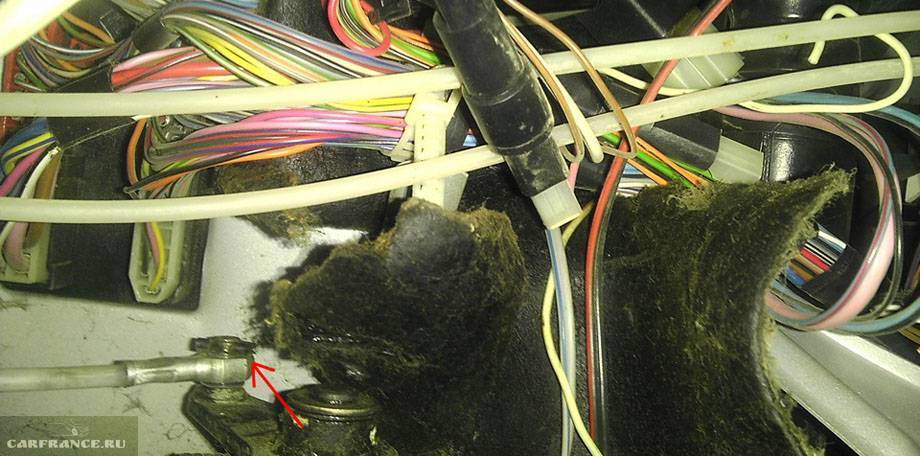 - Удалить водительский коврик для ног и приподнять ковролин.