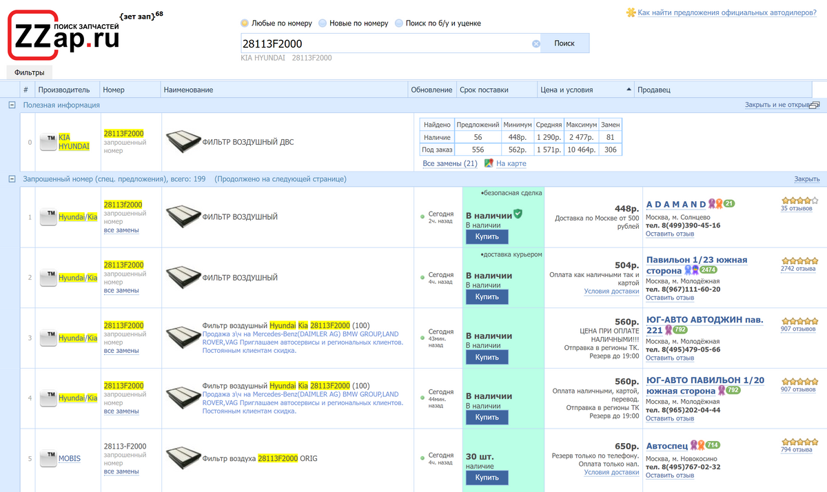 Пример агрегатора для поиска запчастей — zzap.ru. Многие магазины выкладывают сюда свои прайс-листы, поэтому легко найти деталь в наличии или по лучшей цене. Иногда свои предложения размещают и официальные дилеры