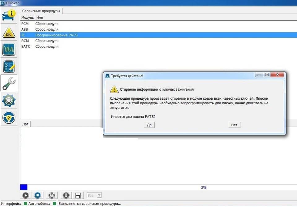 Перепрограммирование ключей (возникает при замене приборной панели).Для того, что бы перепрограммировать вам потребуется 2 ключа. Открываем forscan с расширенной лицензией . Переходим во вкладку «Сервисные процедуры», выбираем «программирование PATS»