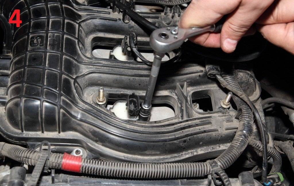 - Выворачиваем болт прижимной пластины кронштейна крепления топливопровода к головке блока цилиндров и снимаем пластину.