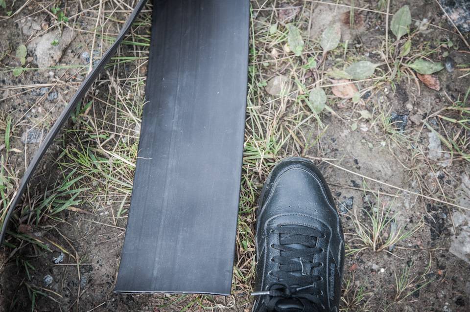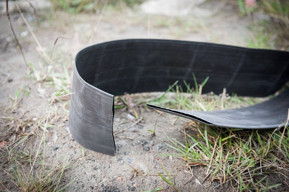 Лист материала 150×100 см стоит около 300 рублей. Из него нарезали полоски шириной 17–18 мм.