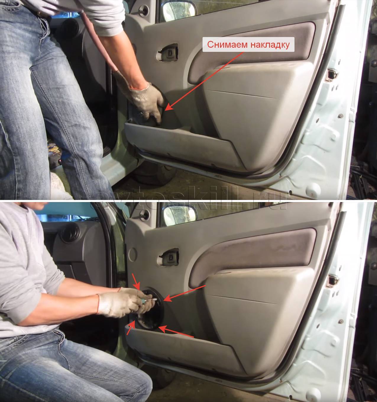 Снятие обшивки передней двери Рено Дастер