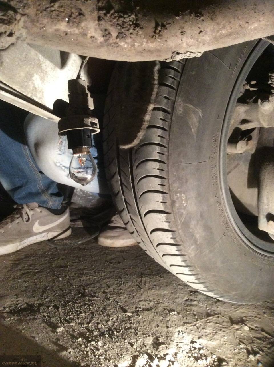 - Начинать работу следует с одной стороны, постепенно переходя на другую. С какого боку начать, роли не играет. Чтобы облегчить доступ к необходимым креплениям нужно выворачивать колеса в нужную сторону, а еще лучше их попросту снять;
