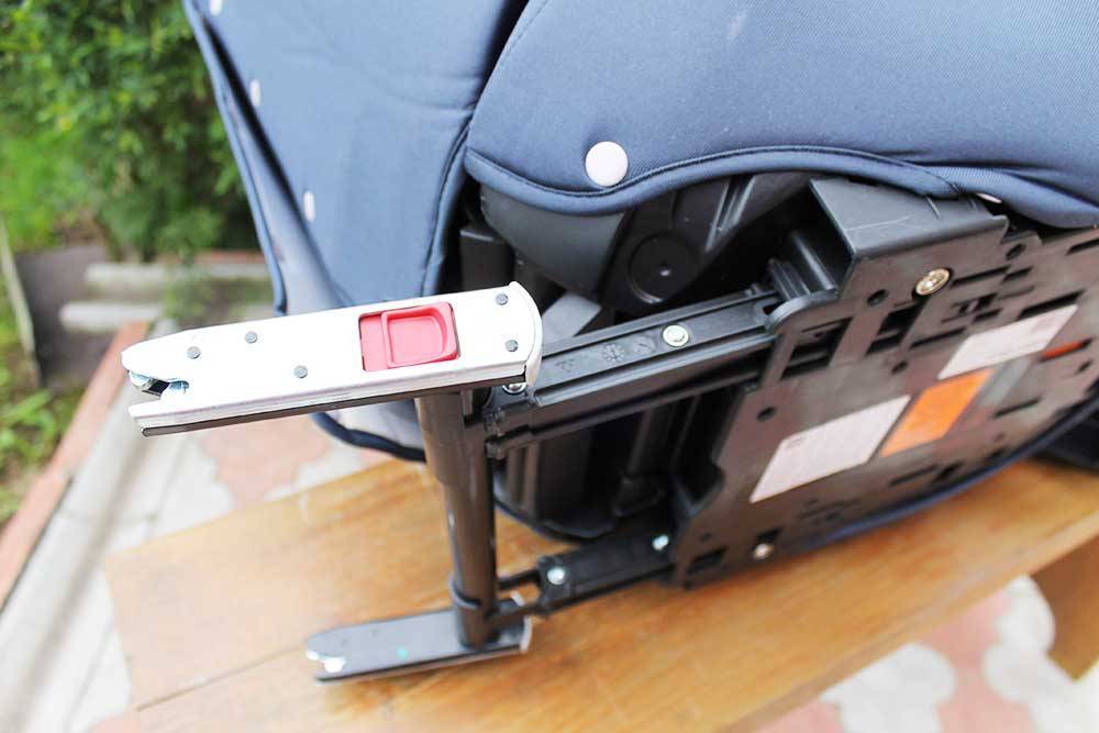 Изофикс со стороны кресла напоминает автомобильный замок — аналогичная конструкция фиксирует двери автомобиля и крышку багажника. Здесь замки защелкиваются на скобах изофикс