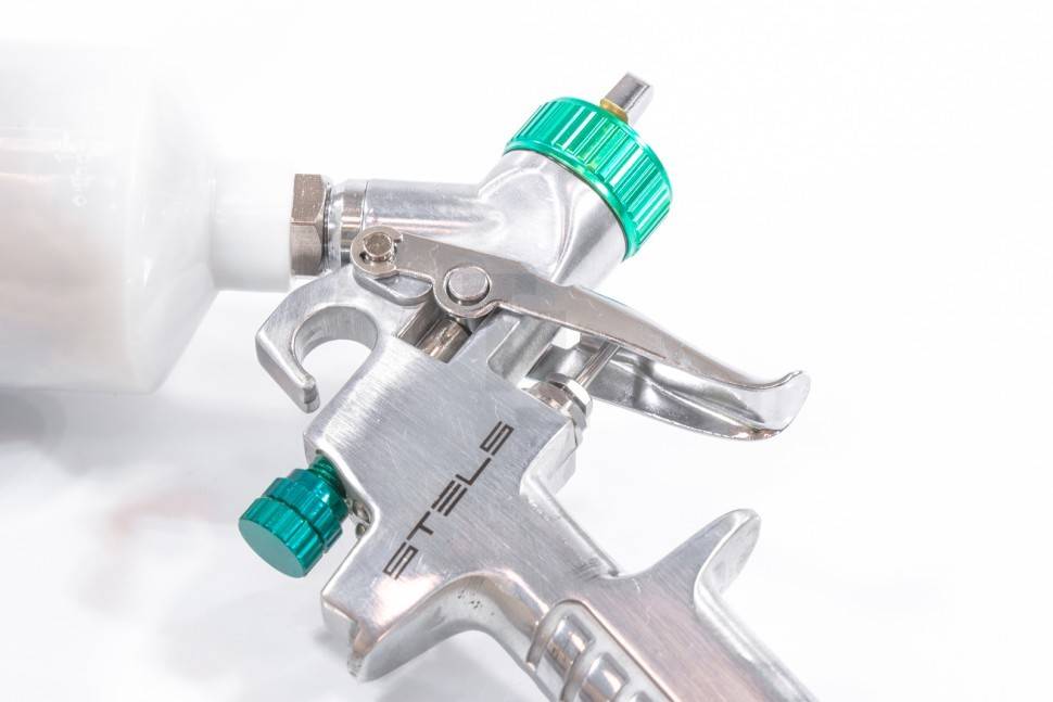 В данном типе инструмента есть возможность настройки размера капельного потока ЛКМ, не требуется использовать высокого давления.