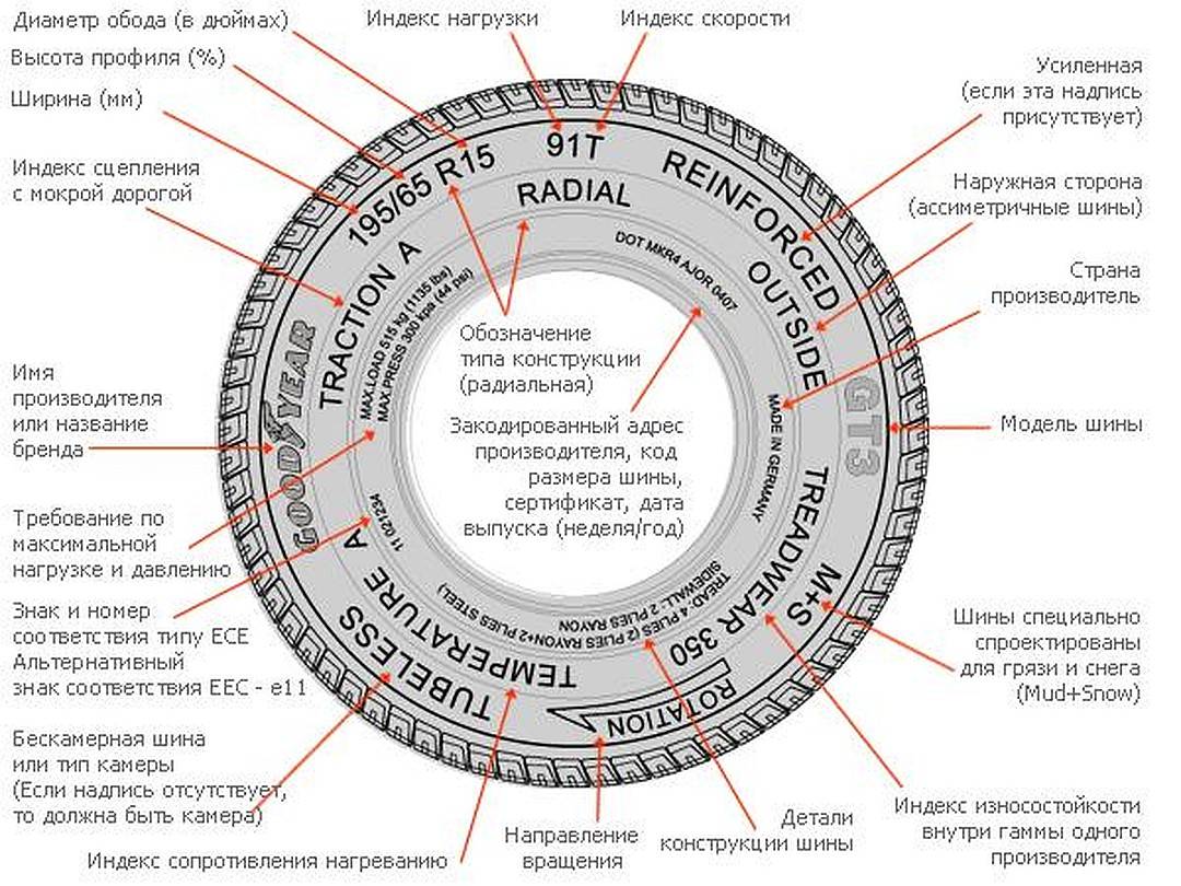 Каждая шина маркируется производителем. По данной маркировке можно судить о тех качествах, которыми обладает резина. Начнем, пожалуй, с такого показателя, как: