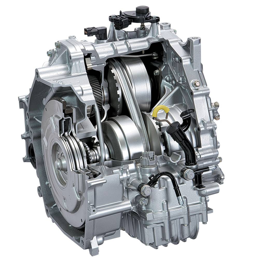 Вариатор (Continuosly Variated Transmission) — бесступенчатая коробка-автомат, «переключение» происходит путём изменения радиусов дисков, связанных клиновым металлическим ремнём, передающих/принимающих усилие на ведущем и ведомом шкивах.