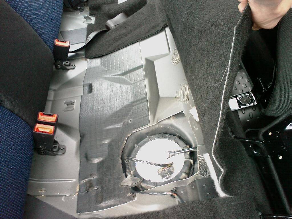 В целом, увидеть топливный модуль с насосом можно и без снятия бензобака. Необходимо снять заднее сиденье, под которым есть специальное технологическое отверстие, прикрытое заглушкой.