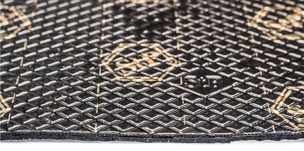 Шумофф М2, М3 – имеют внешний защитный слой профилированной из толстой алюминиевой фольги, что дает дополнительную механическую защиту обработанной поверхности. Клеящий слой на каучуковой основе стойкий к агрессивным средам. В качестве звукогасящего материала используется высоконаполненная полимерная композиция. Рельефная поверхность металлического слоя сохраняется после монтажа не менее чем в 50% ячеек, что придает всей конструкции дополнительную пространственную жесткость.