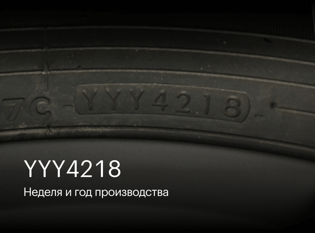 Свежие шины легко определить даже по внешнему виду: они имеют характерный иссиня черный цвет, в отличие от старых, резина которых более серая.