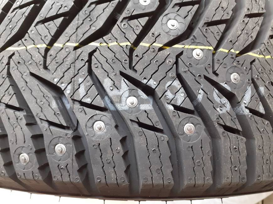 Для обеспечения лучшего сцепления с полотном дороги, а также лучшей динамики разгона, шипы устанавливаются в плечевой зоне шины.