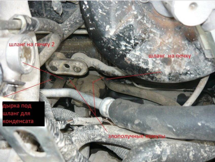 - Через моторный отсек необходимо удалить патрубок отопителя, предварительно запомнив либо отметив его положение. Патрубок легко снимается после выкручивания крепёжного болта.