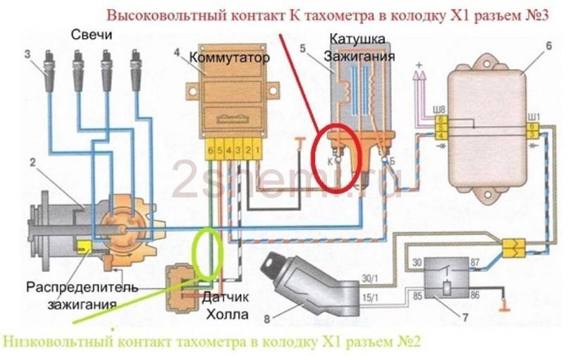 Одним из важнейших элементов схемы является фотоэлектрический датчик Холла, встроенный в распределитель зажигания. С его помощью БСЗ (бесконтактная система зажигания) фиксирует положение распределительного вала двигателя и определяет момент искрообразования.