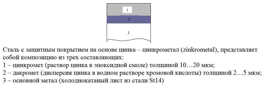 - Цинковое покрытие — 12-15 мкм;