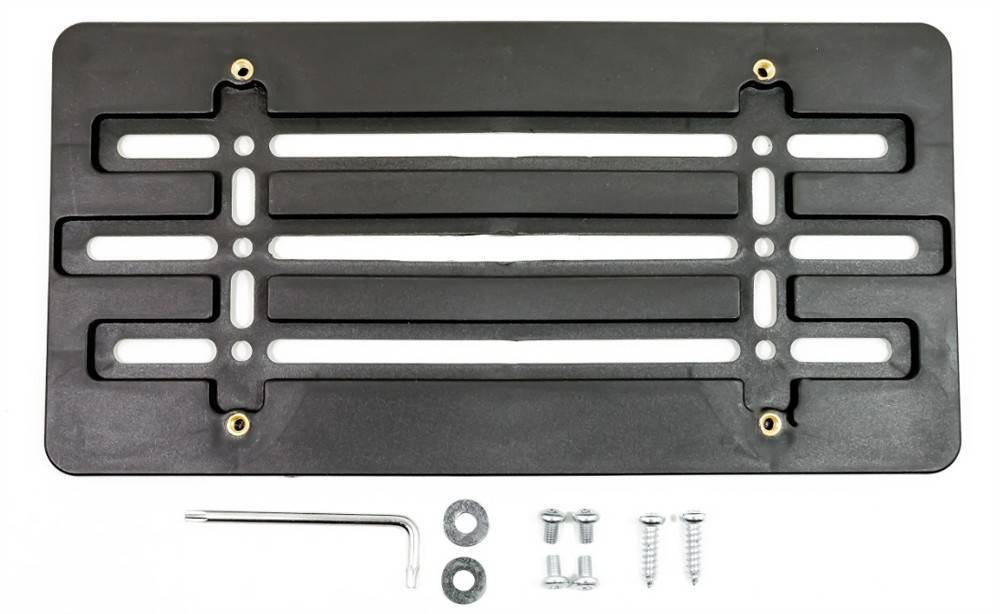 - Берём пластиковый кронштейн (Rear License Plate Holder Bracket), подходящий для вашей модели автомобиля или универсальный, и прикручиваем его к кузову двумя винтами. Там должны быть заводские отверстия с резьбой. Как подобрать винты читайте далее.