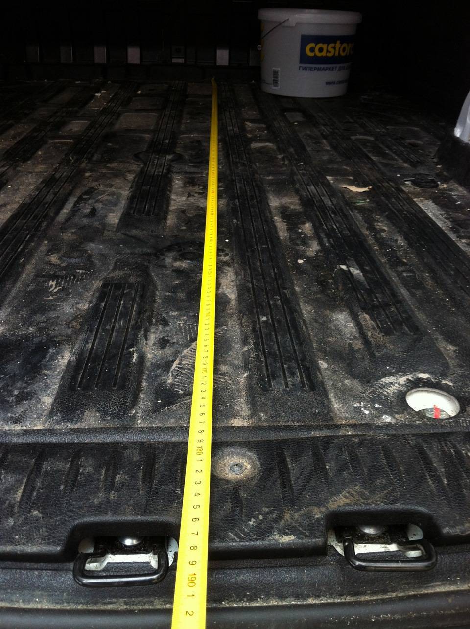 Длина в нижней части — 187см. Сверху поменьше, т.к. кабина отделена от кузова перегородкой в форме «7».