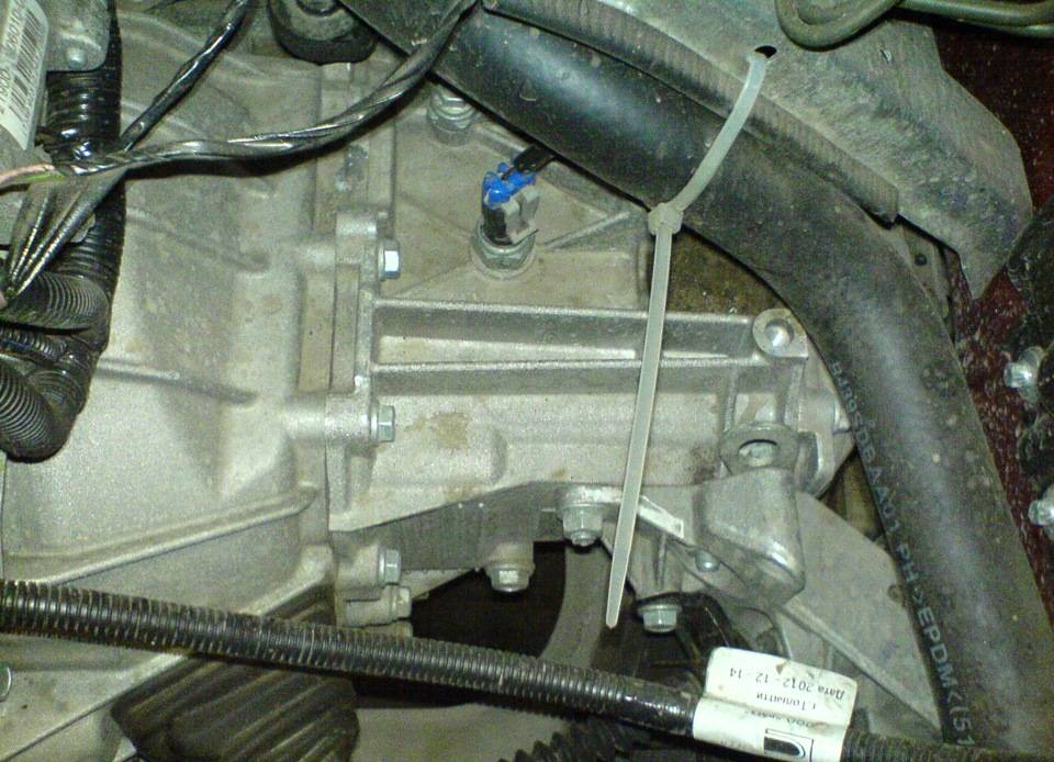 Мы пытаемся снять выключатель заднего хода. На картере ищем пластиковый разъём (см. фото) и сразу отключаем его.