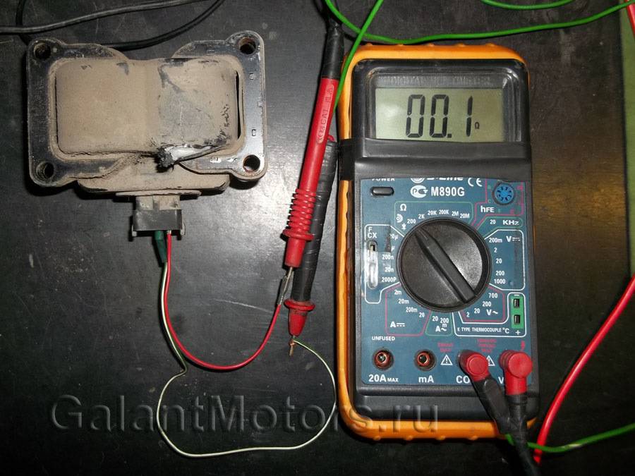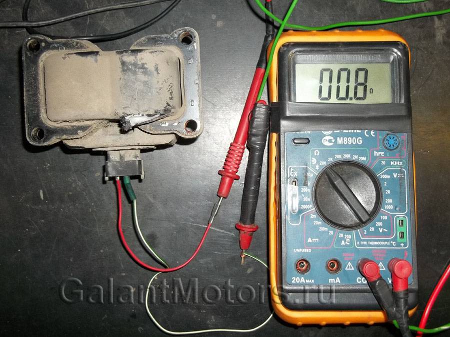 3. Измерение сопротивления. Для этого понадобится тестер, переключенный в режим омметра. Проводят измерения на парных выводах модуля между 1 и 4, а также 2 и 3 цилиндром. Величина сопротивления должна быть одинакова, и приближаться к показателю 5,4 кОм.